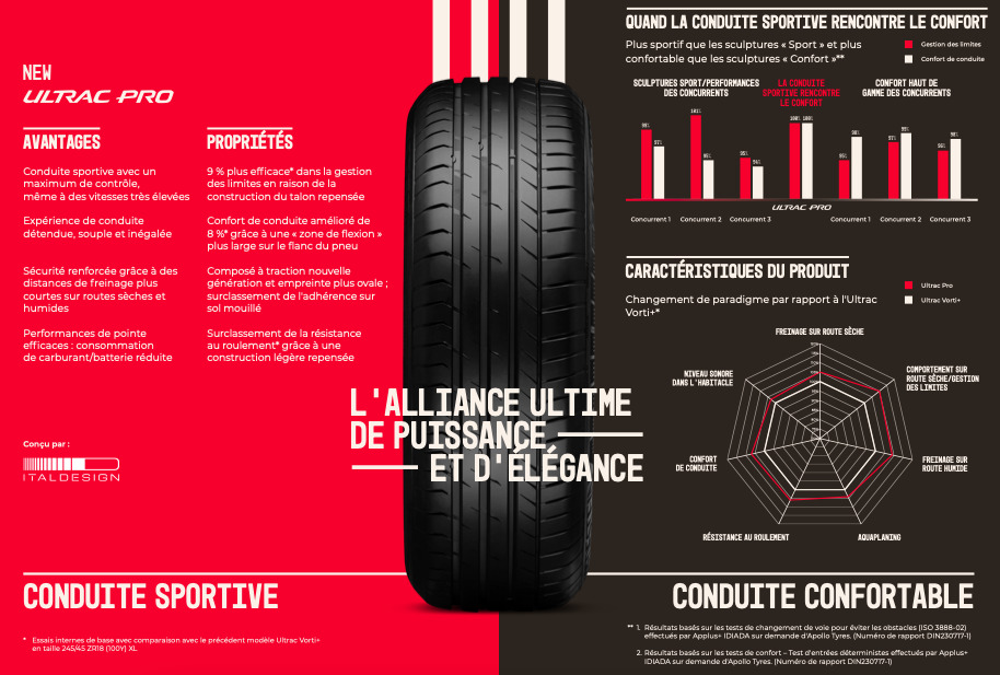 - Conduite relaxante et confortable : le nouveau pneu été Vredestein Ultrac Pro offre la meilleure expérience de conduite relaxante et douce de sa catégorie. Le confort de conduite est amélioré de 8 % grâce à l’augmentation de la zone de flexion dans le flanc du pneu.